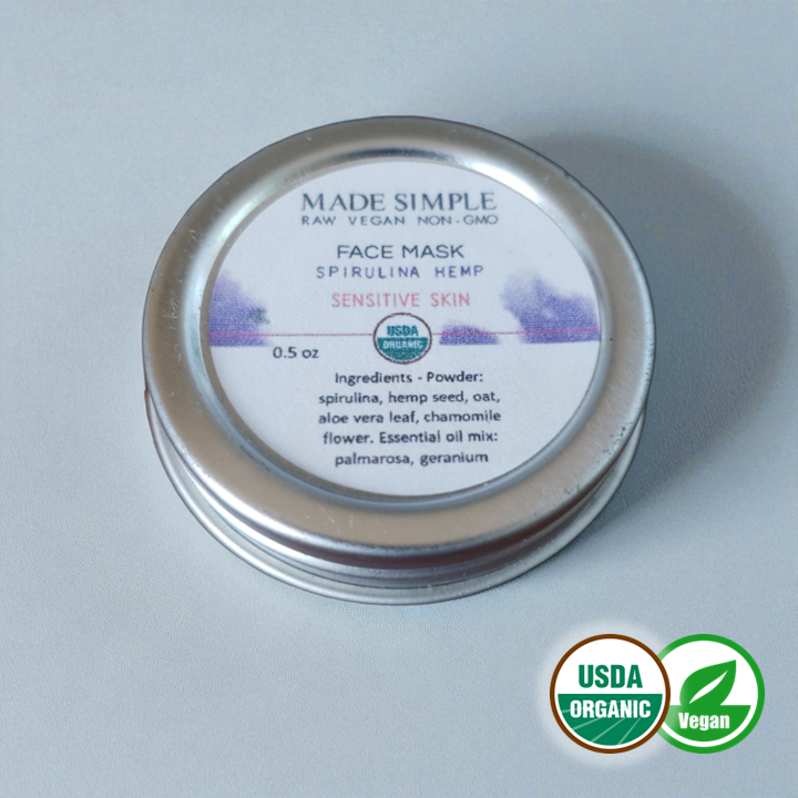 Made Simple Skin Care USDA certified organic raw vegan mask Spirlina Hemp sample5a